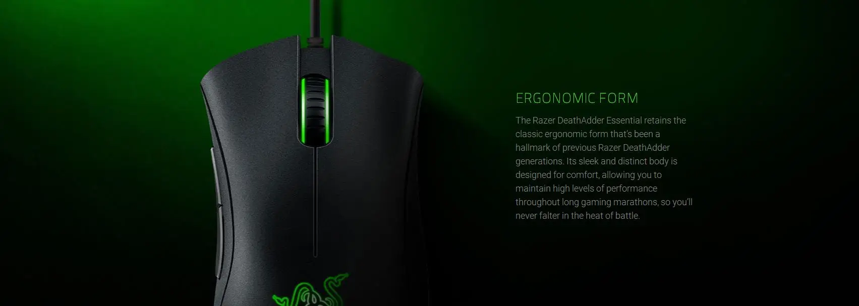 Razer Deathadder Essential has upgraded to anti-slip side grips and strengthen control and precision over your mouse during lift-offs and fast swipes.
